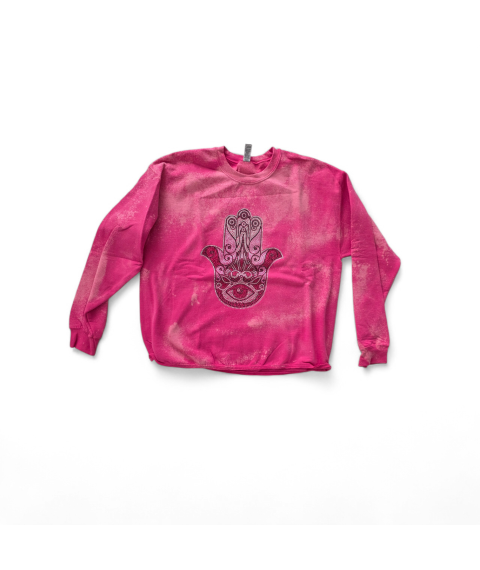 Pink washed sweatshirt with crystal Hamsa design. One-of-a-kind handmade piece.