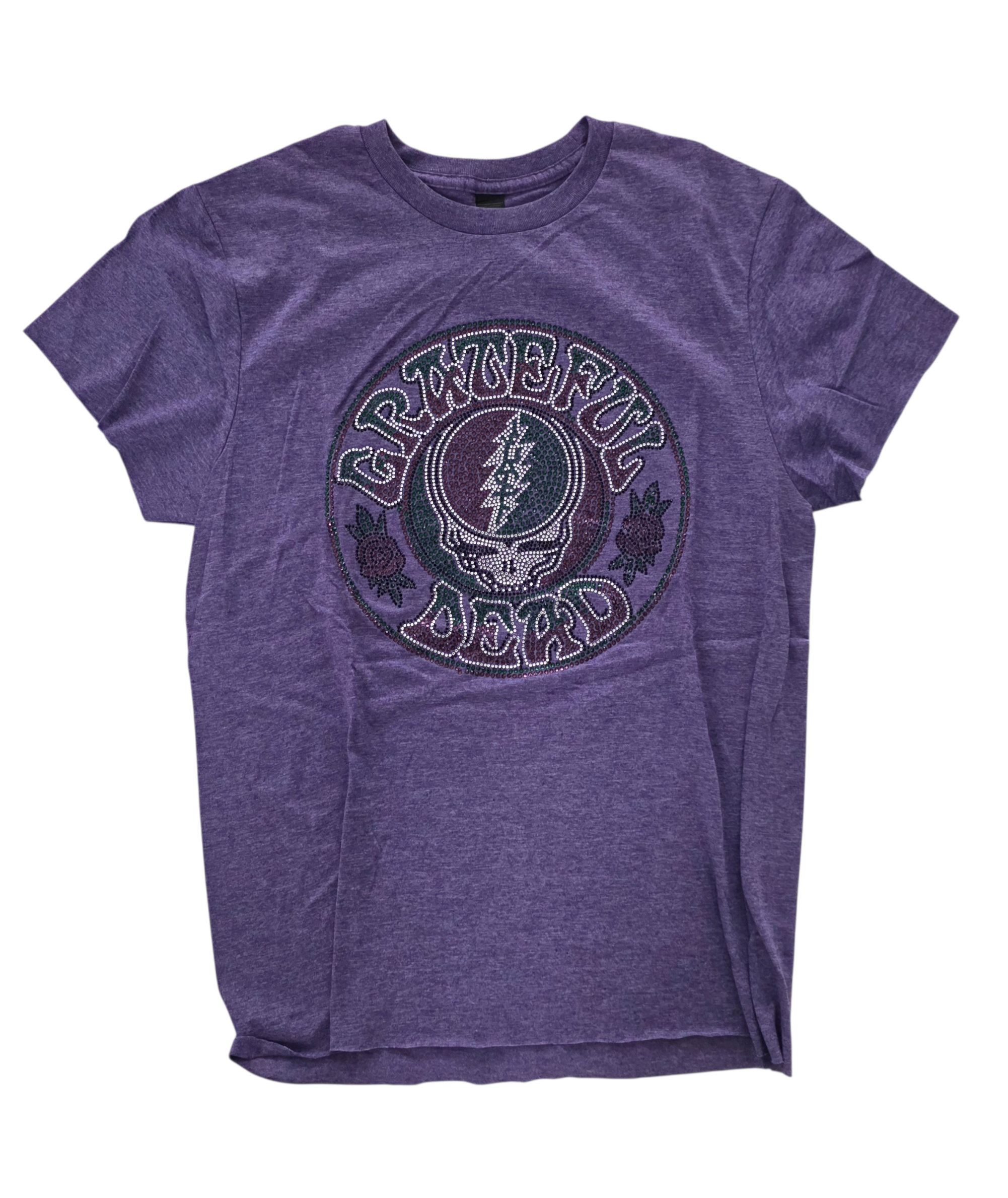 This standout purple tee features a bold crystal skull-inspired design with vintage energy and modern sparkle. Soft, comfortable, and easy to style, it’s perfect for casual wear or making a statement. Estimated Size: Women’s Medium/Large relaxed fit. Each piece is handmade and may vary slightly in crystal placement and finish, making every item uniquely yours.