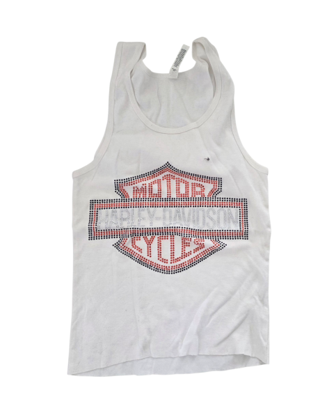 Bold, clean, and effortlessly edgy, this handmade white tank features a crystal-studded biker-inspired graphic that delivers that classic street-meets-luxury vibe. Lightweight and perfect for layering or wearing solo, it’s built to stand out. Estimated Size: Women’s Medium fitted. Due to the handmade process, slight variations in crystal placement and finish may occur, adding to the uniqueness of each piece.