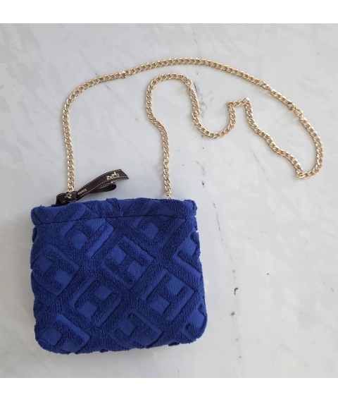The rich textured fabric gives the bag a distinctive visual presence while maintaining a soft and comfortable feel. The compact silhouette is designed to carry essentials while remaining elegant and lightweight.